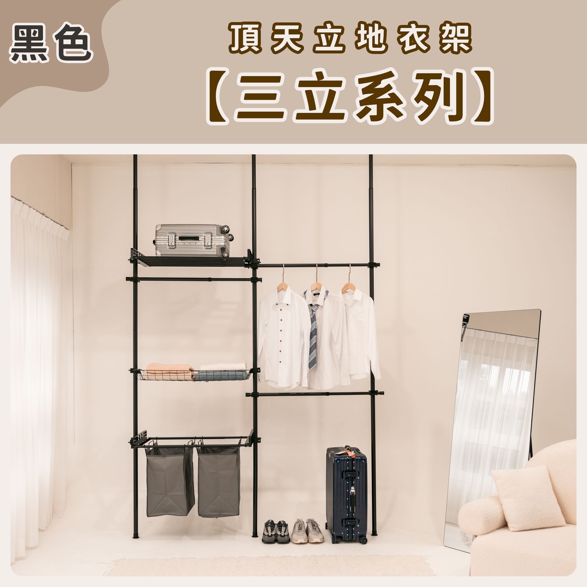 頂天立地衣架【三立系列】-黑色